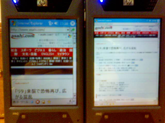 左側が、日本HP iPAQ hx4700 で、スタンダードSE VGA表示。右側が US HP iPAQ 4705を日本語化して、リアルVGA化したもの。大分見え方が違うのが分かる。 因みに、リアルVGA化用のSE_VGAソフトは、英語ROM用専用のようだ。