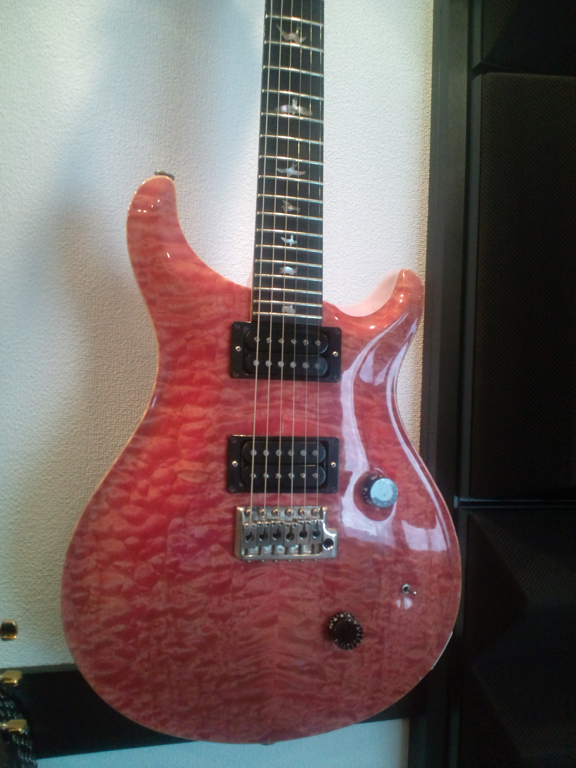 今晩の催眠術協会ライブでは、Paul Reed SmithのSignatureモデルでも幻といわれるオリジナルのBONNIE PINKを久しぶりに披露する。 1991年の製造だ。 最近は、また、このギターが有名になったため、Private Stockでスペシャルオーダー可能となったが、オリジナルの奥深い音は再現できない。貴重木材や銅線などのバランスが奇跡的なギターだ。 また、Bogner Fishとの組み合わせは絶妙で、この組み合わせでの演奏は世界最初だろう。幻のギターと幻のアンプの超レアな組み合わせだ。ヴィンテージギターにもよく鳴る期間があって、例えば、60年代のギターはスタジオではいい音を出せるが、ライブではあまり鳴らない。今の旬は、80年代後半から90年代初頭ぐらいのもの、もちろん厳選された木材とパーツによるものであることはいうまでもない。また、湿度と温度をしっかり管理して保存されてきたことが絶対条件。さらには、やはりちゃんと定期的にしっかり弾き続けられていないと鳴るギターにはならない。