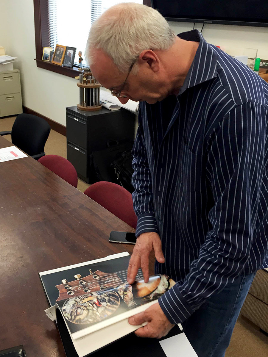『俺のギター THE Dr. TOMABECHI ULTIMATE GUITAR COLLECTION(豪華版)』には、PRSのレアな一点ものギターもフィーチャーしている。有名な『Art of PRS』という本に載ってるギターも何本かは私のギターで、『俺のギター』でも取り上げた。『Art of PRS』は絶版なので、PRSファンにも『俺のギター』は有用だ。という訳で、PRS創業者社長のポールリードスミス氏に一冊謹呈した。喜んで頂いた。